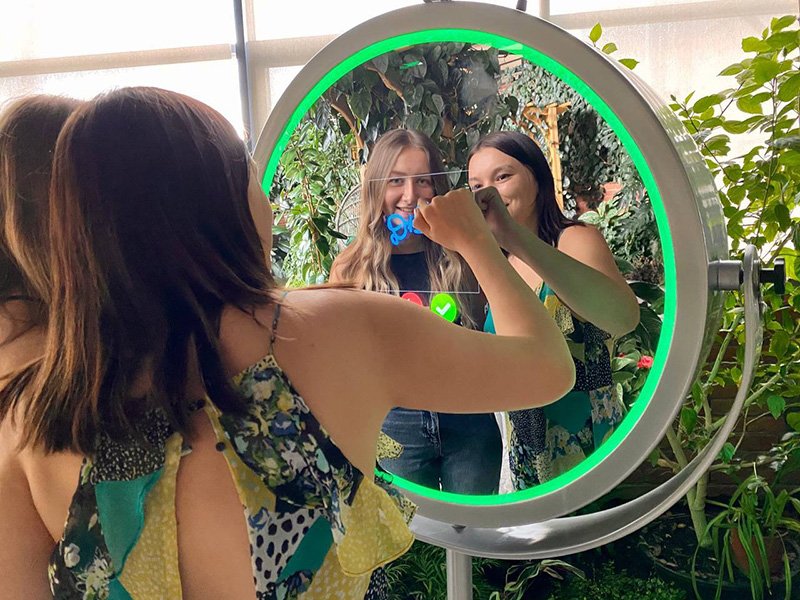 - Індивідуальний підхід. Фотозона або дзеркало підлаштовуються під формат події, кольори залу та кількість гостей.