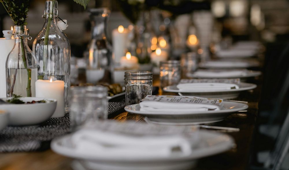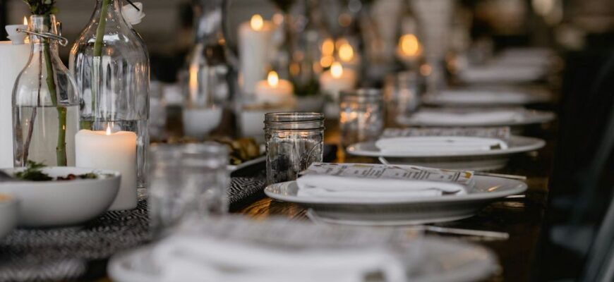 - Освещение и текстиль: свечи, гирлянды, скатерти