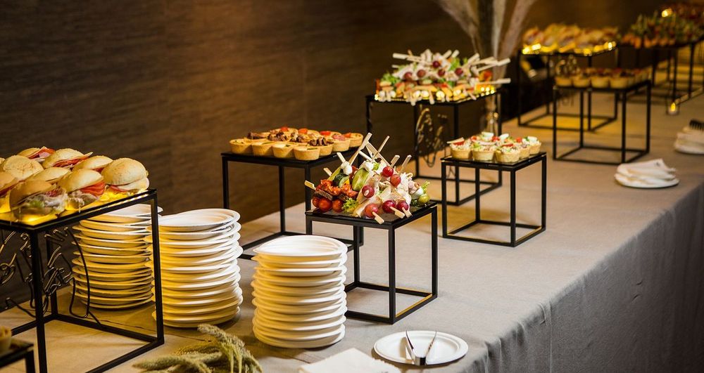 Фуршет удобен для небольших пространств: мини-бургеры, канапе, тарелки с овощами/сыром. Семейный стол — теплее по ощущениям, но требует места. Сет-меню уместно в ресторане.