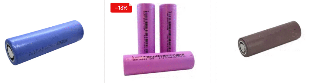 - великий вибір літій-іонних елементів (18650, 21700, LiFePO4);